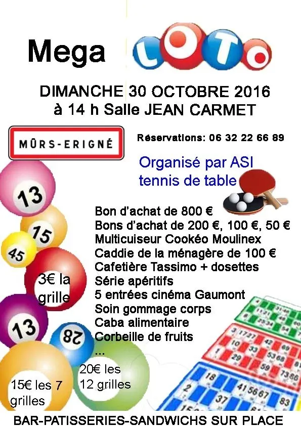 MEGA LOTO DIMANCHE 30 OCTOBRE à 14H. Toutes les infos sur agenda-loto.net
