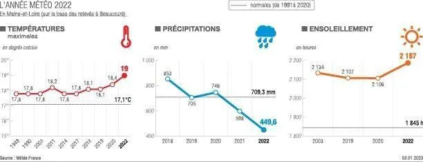 Météo. L’année 2022 a été la plus chaude des trente dernières années en Maine-et-Loire... |