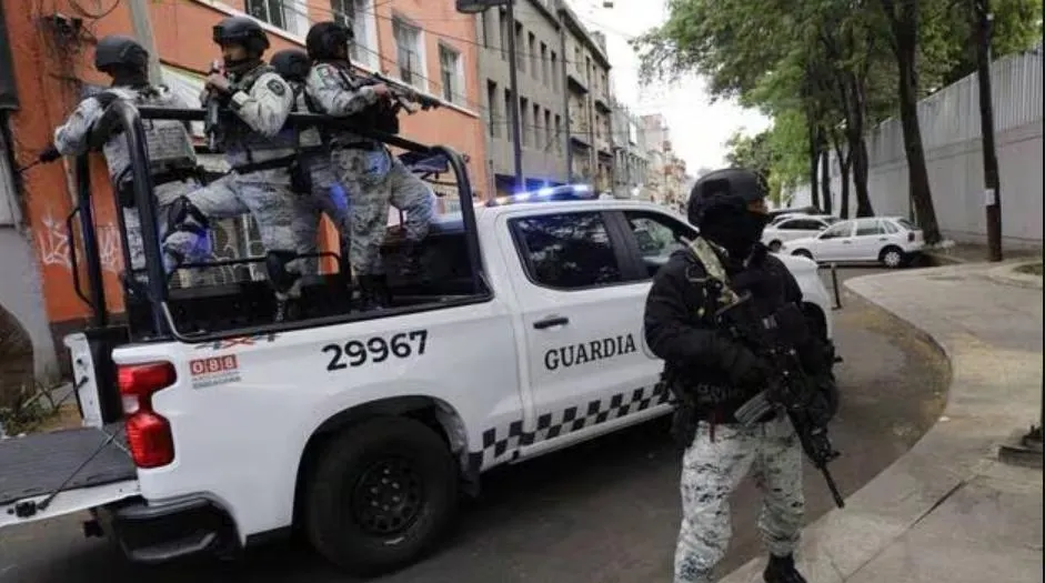Des membres de la Garde nationale mènent une opération à Mexico, au Mexique, le 22 février 2026, après que les forces fédérales ont tué Nemesio Oseguera Cervantes, alias « El Mencho », chef du cartel Jalisco New Generation, à Guadalajara. © GERARDO VIEYRA / AFP