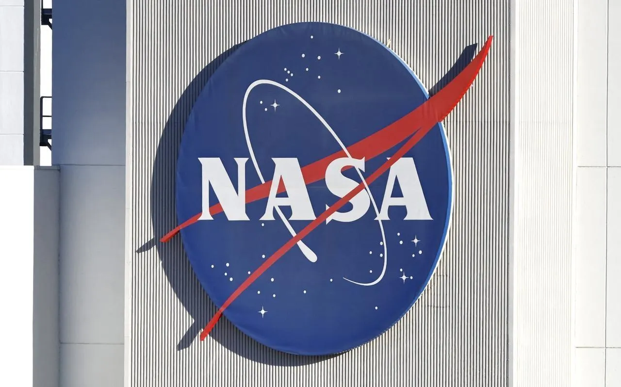 Le logo de la Nasa affiché au Jet Propulsion Laboratory de l’agence spatiale américaine, à La Cañada Flintridge, en Californie, le 15 octobre 2025. © Mario Tama / Getty Images North America via AFP