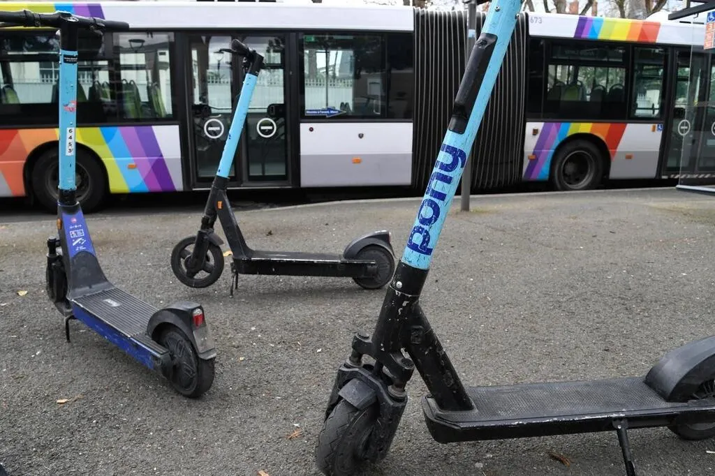 Angers, le 31 mars 2023. Les trottinettes Pony se veulent complémentaires des transports en commun. © CO – Laurent COMBET