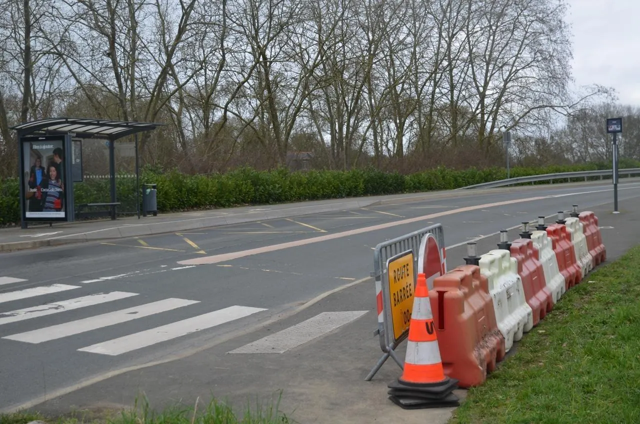 Vendredi 20 février 2026, tout était prêt pour procéder à la fermeture du pont de Juigné. Seule la mise en place d’un alternat a pu permettre de le maintenir ouvert. © Ouest-France
