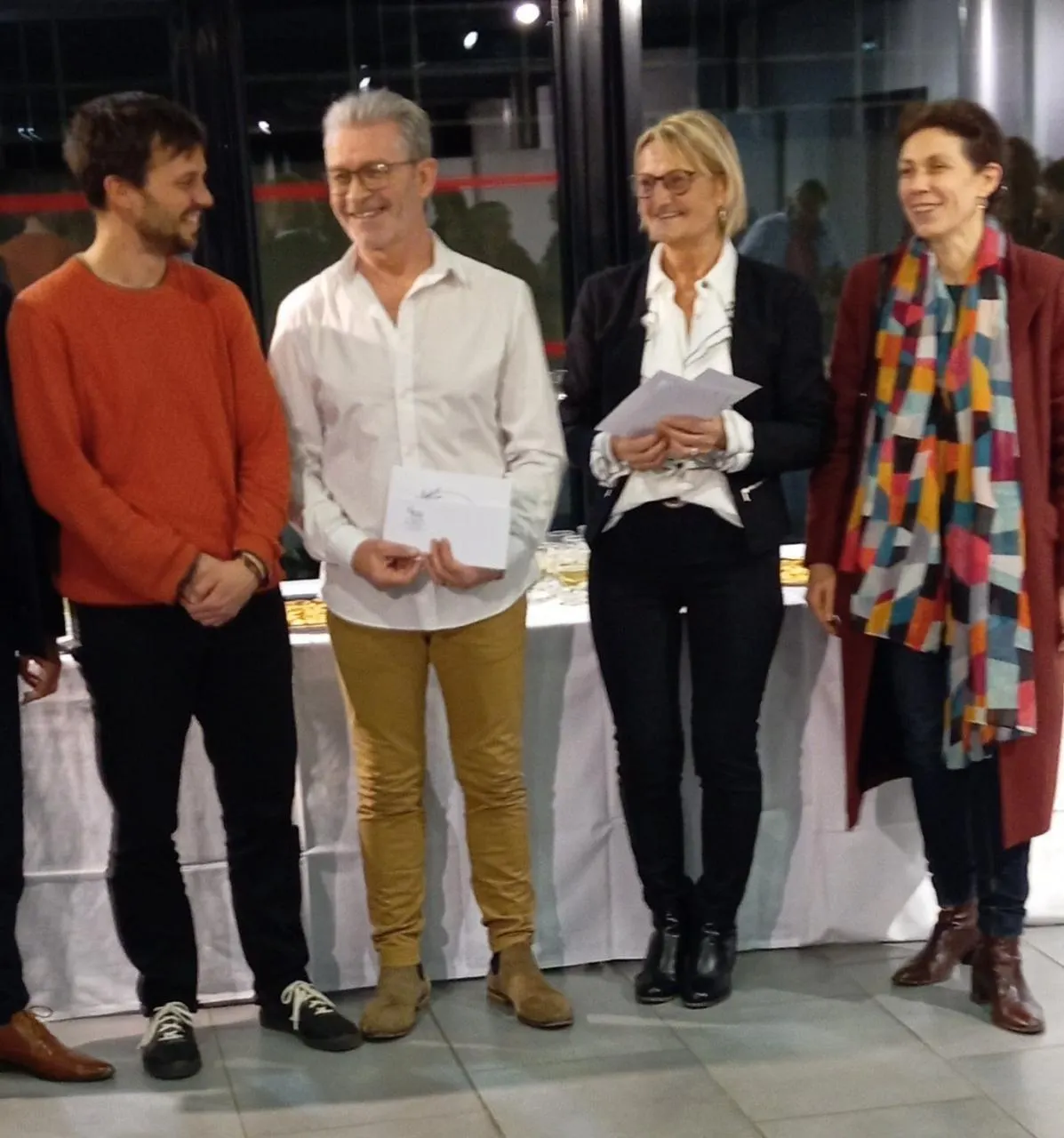 Fabrice Poirier et Brigitte Ricou entourés de Marc-Antoine Soulis, directeur du pôle des temps de l’enfant, et d’Elsa Pastor, directrice générale des services de la ville. © CO.