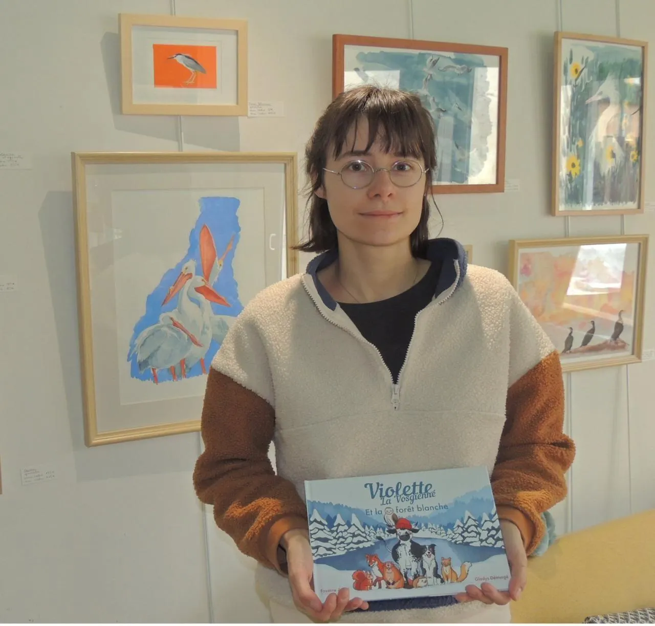 Ses dessins à l’encre de Chine sont peints à l’aquarelle ou à la gouache, Gladys Démurgé dessine de mémoire ou d’après photo les animaux, la nature ou encore les scènes de la vie courante. L’artiste réalise ses tableaux à la demande comme des illustrations personnalisées pour les familles. Elle est l’illustratrice du tome I Violette la Vosgienne et la forêt blanche.  Le livre de l’autrice Faustine Amiot sera prochainement suivi du tome II est destiné aux enfants de 4 à 7 ans, il est présent à la librairie le Mot de la faim et à la bibliothèque municipale Clara-Malraux.Â