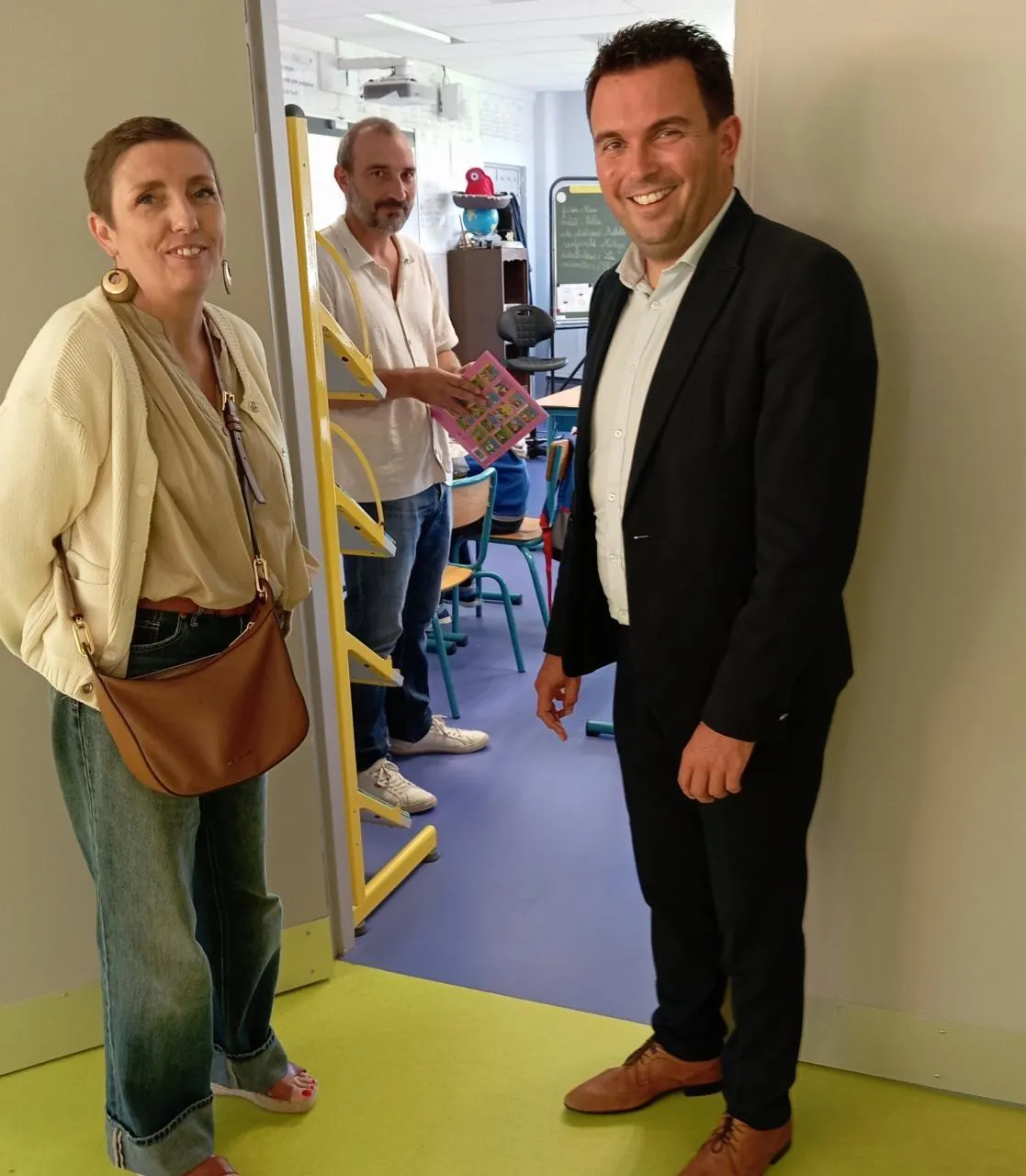 Le maire de Montreuil-Juigné, Benoit Cochet, accompagné de son adjointe à l’éducation Sandrine Dugast et de responsables de services municipaux ont rendu visite mardi après-midi 9 septembre aux écoles de la ville.