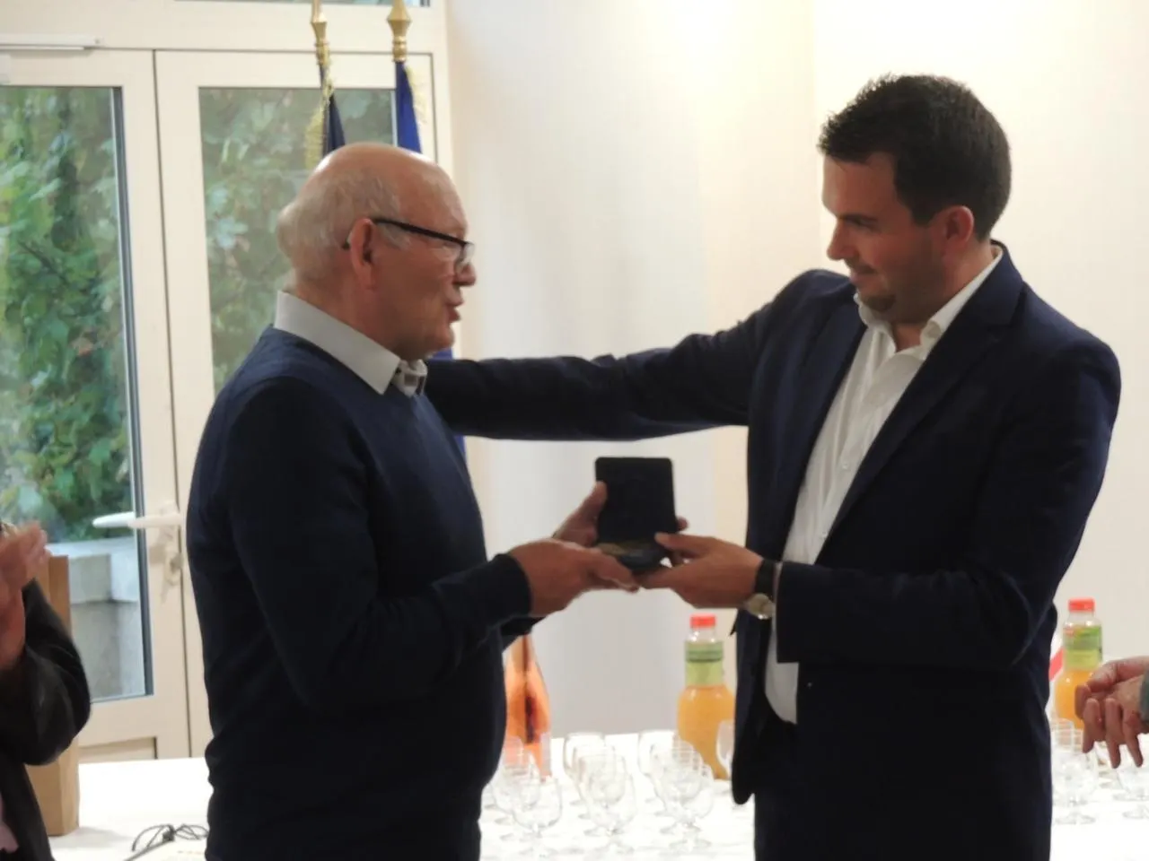 Benoît Cochet, le maire de Montreuil-Juigné (Maine-et-Loire) a remis mercredi 10 septembre 2025 la médaille de la ville à Manfred Wiedemann, premier adjoint de Kamen, ville allemande jumelée avec Montreuil-Juigné.