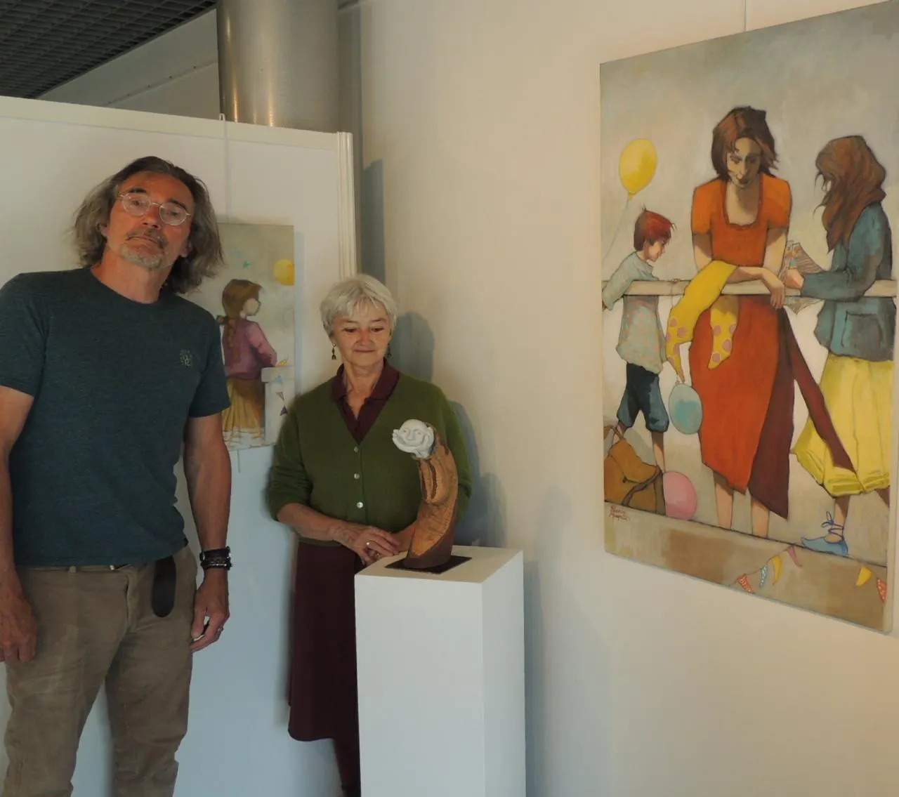 Bruno Guiard, le sculpteur, et Chantal Bineau, peintre, exposent jusqu’au dimanche 29 mars au centre culturel © Ouest-France.