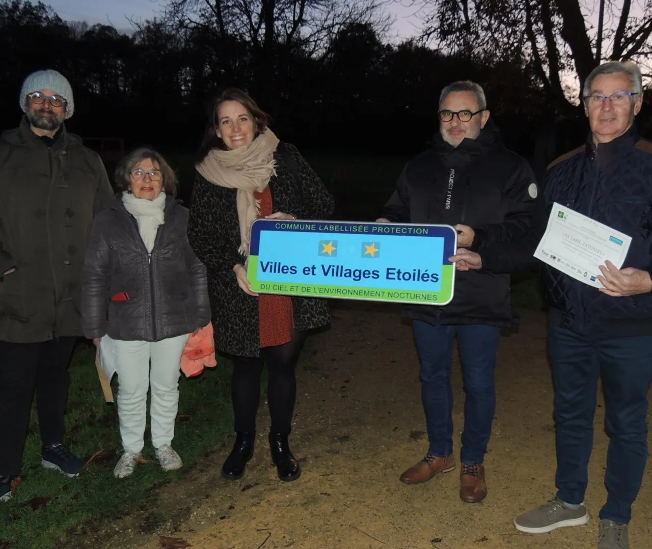 Ce lundi dans le parc de la Guyonnière, la municipalité recevait le label « Villes et villages étoilés » remis par Monique Graveleau, correspondante départementale de l’Association nationale de la protection du ciel et de l’environnement (Anpcen).