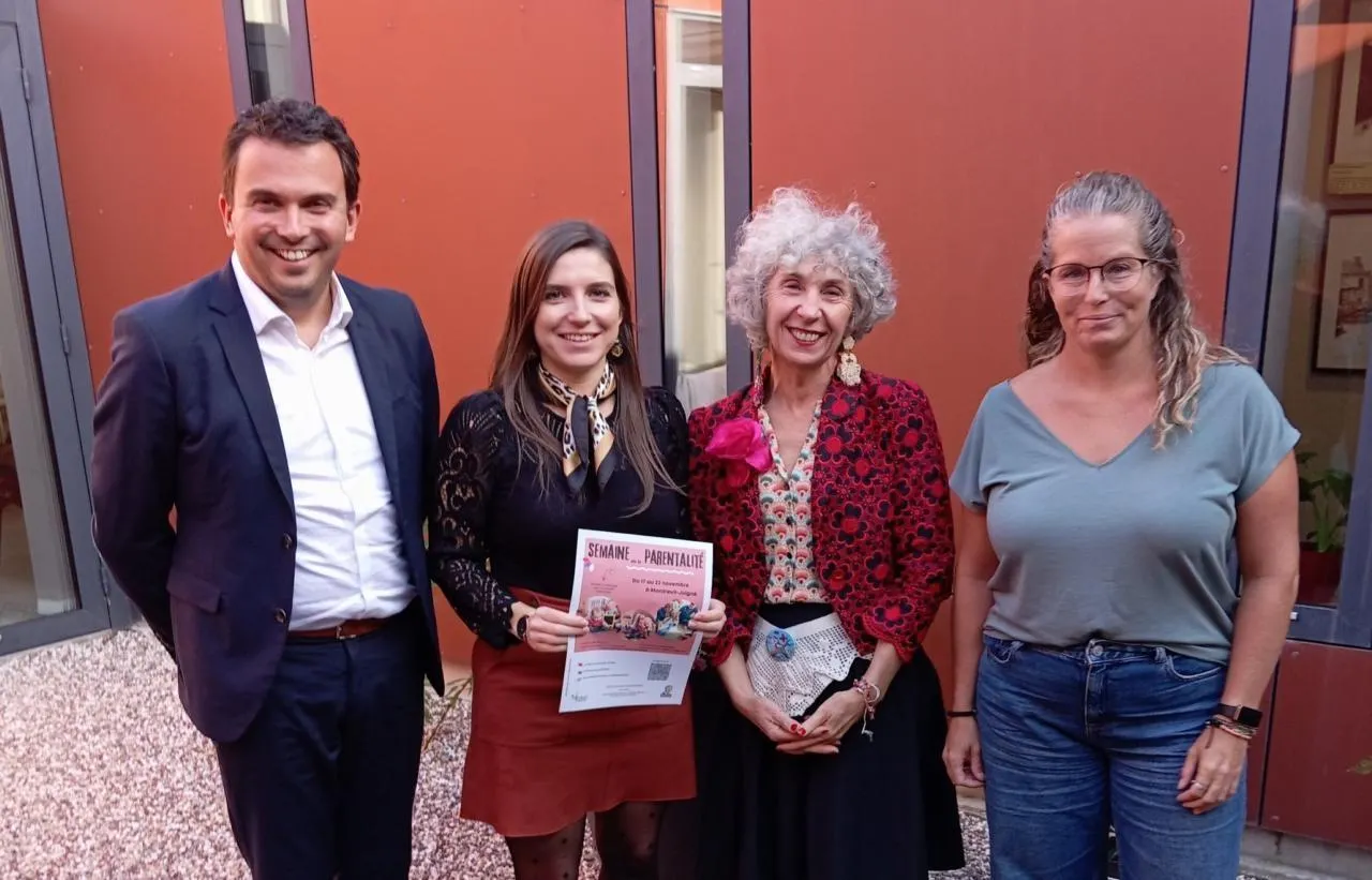 Le maire Benoit Cochet, Manon Joubert, Véronique Rabaud du Relais petite enfance et Hélène Cognet membre partenaire du collectif Parentalité. © CO.
