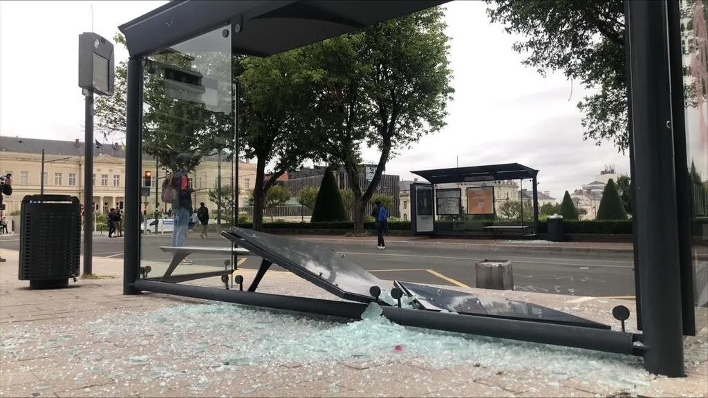 Des aubettes ont été brisées en face de l’hôtel de ville d’Angers, ce vendredi 30 juin. Camille Rivieccio