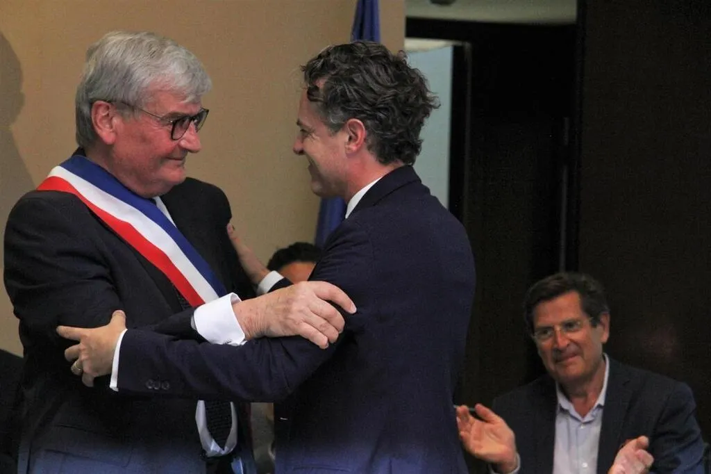 Le 18 juillet 2022, avait eu lieu la passation de pouvoir entre Christophe Béchu, à droite, et le nouveau maire d’Angers, à gauche : Jean-Marc Verchère. © Archives Ouest-France