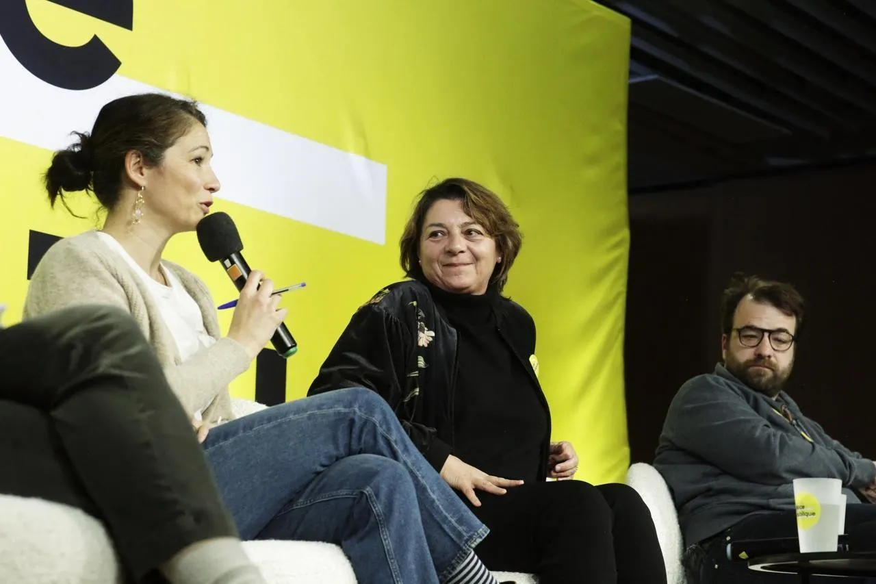 Agnès Langevin (au centre) lors du congrès national du parti Place Publique, à l’Espace Charenton, le 16 mars 2025. NICOLAS RONGIER/Hans Lucas via ARCHIVES AFP