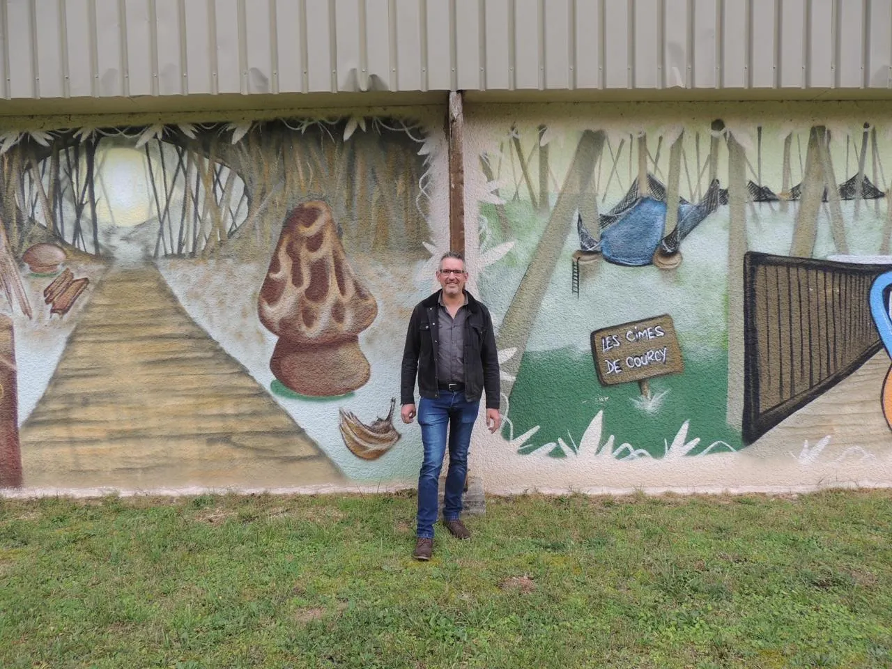 Mardi 22 octobre : Cyrille Couineau posant devant les fresques de la salle omnisports © CO