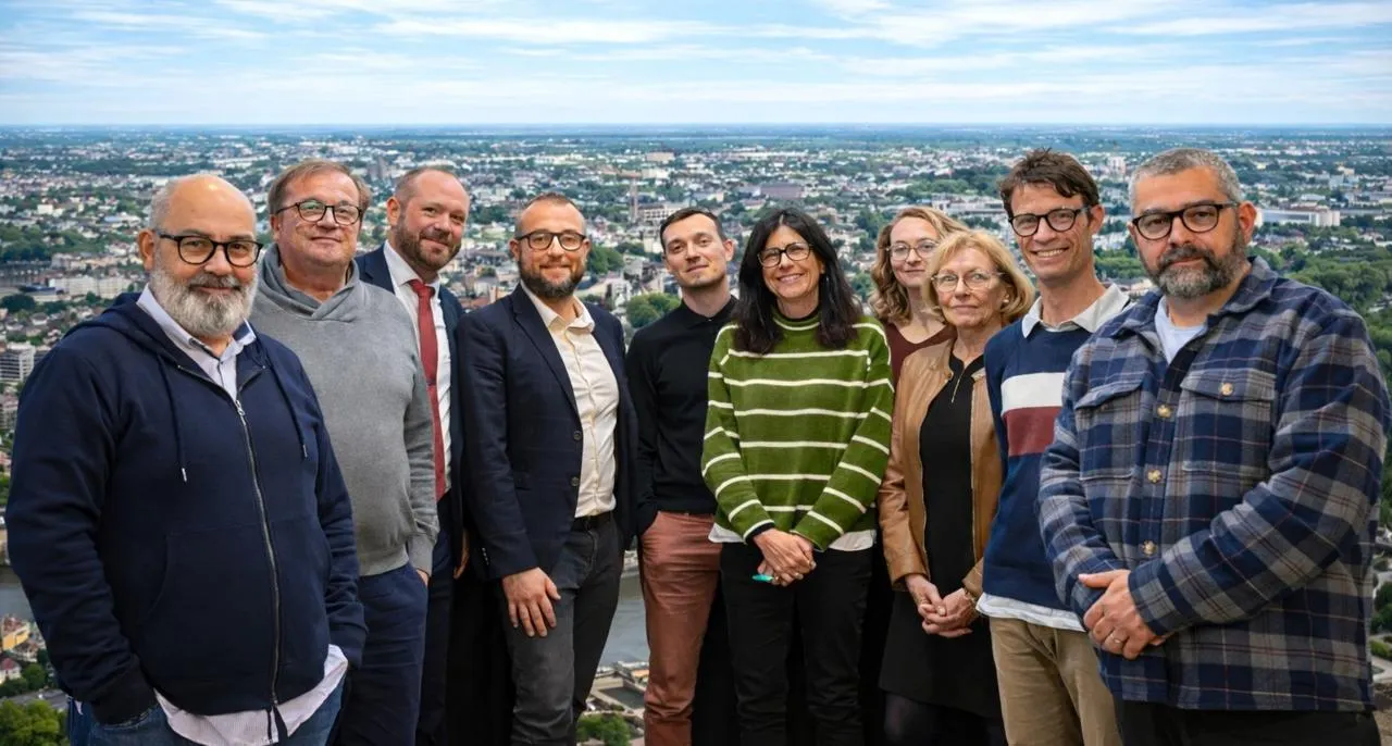 Le groupe de travail d’Angers au cÅ“ur, réuni autour de Norman Hubert (4e en partant de la gauche) a décidé de se rallier à la liste de Valentin Rambault (Angers 2026). © Angers au CÅ“ur