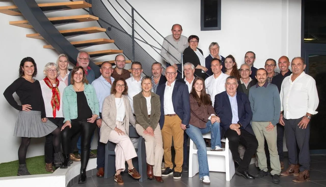 Jean-François Ouvrard (au centre) et Isabelle Suteau (assise à sa droite), entourés d’une partie de l’équipe de la liste “Sèvremoine nos communes”. © Sèvremoine nos communes