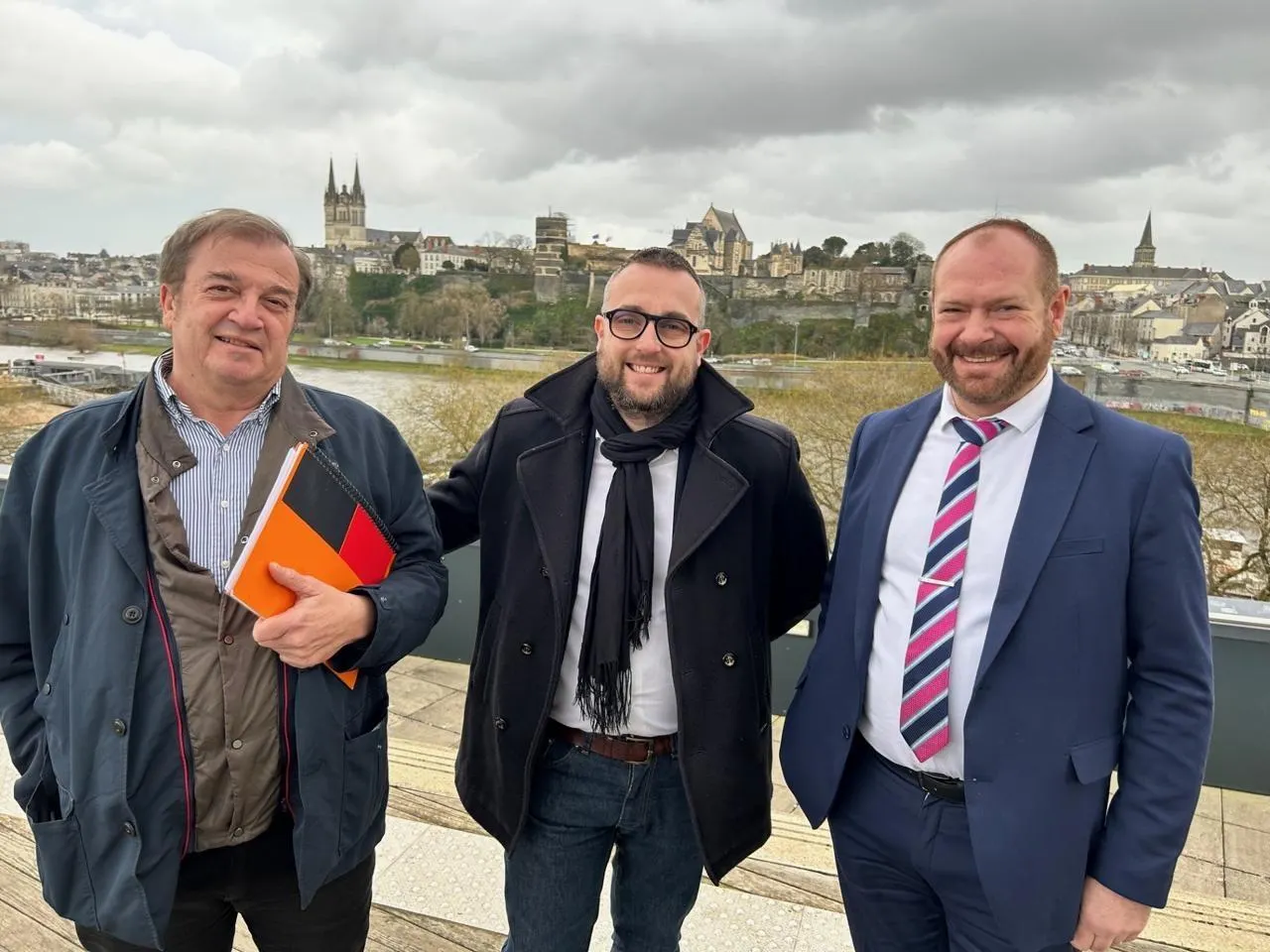 Angers, mardi 27 janvier 2026. Éric Robert, Norman Hubert (tête de liste) et David Chouteau (de gauche à droite) font partie du comité de pilotage d’Angers au cÅ“ur. © CO