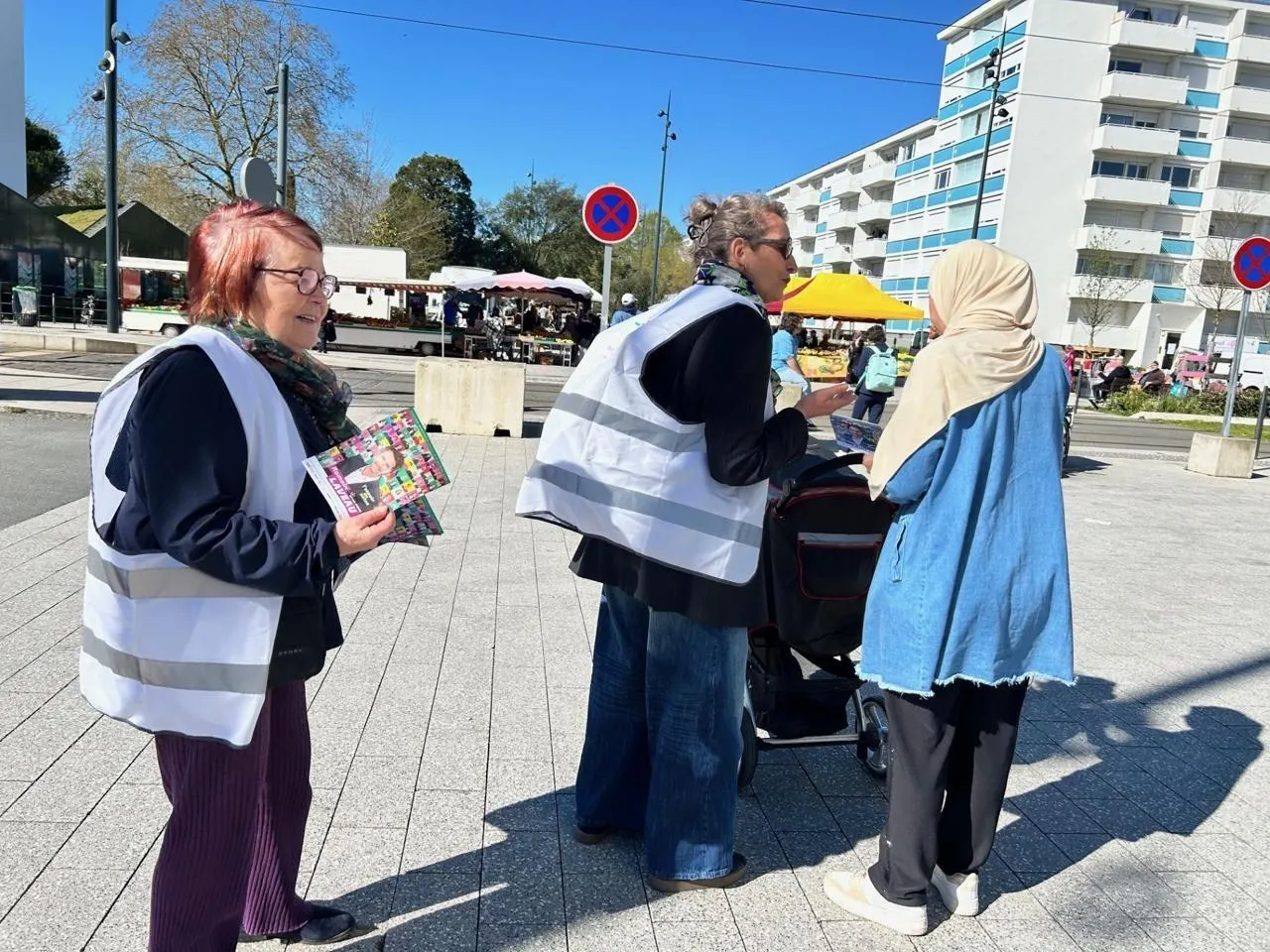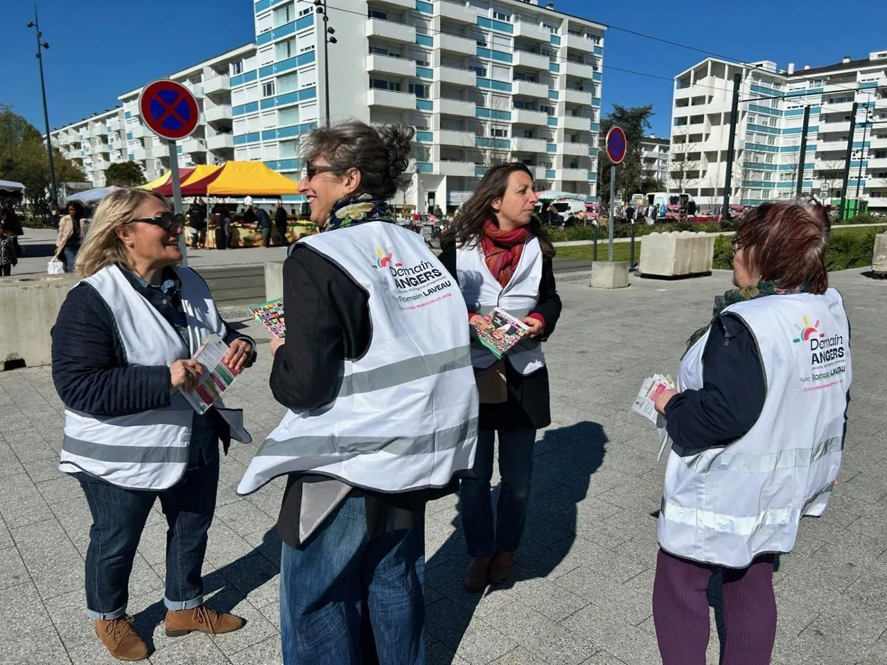 Sous le soleil, une poignée de militantes et de colistières de Romain Laveau (Les Écologistes, liste « Demain Angers ») distribuent des tracts aux passants, place de l’Europe à Monplaisir, à Angers. D’un côté les ...