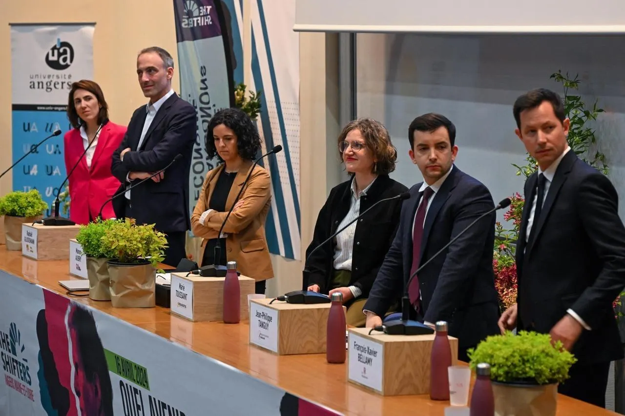 Angers, le 16 avril 2024. Les Shifters angevins avaient organisé un débat avec les candidats aux élections européennes, Valérie Hayer, Raphaël Glucksmann, Manon Aubry, Marie Toussaint, Jean-Philippe Tanguy et François-Xavier Bellamy. © Archives CO - Laurent COMBET