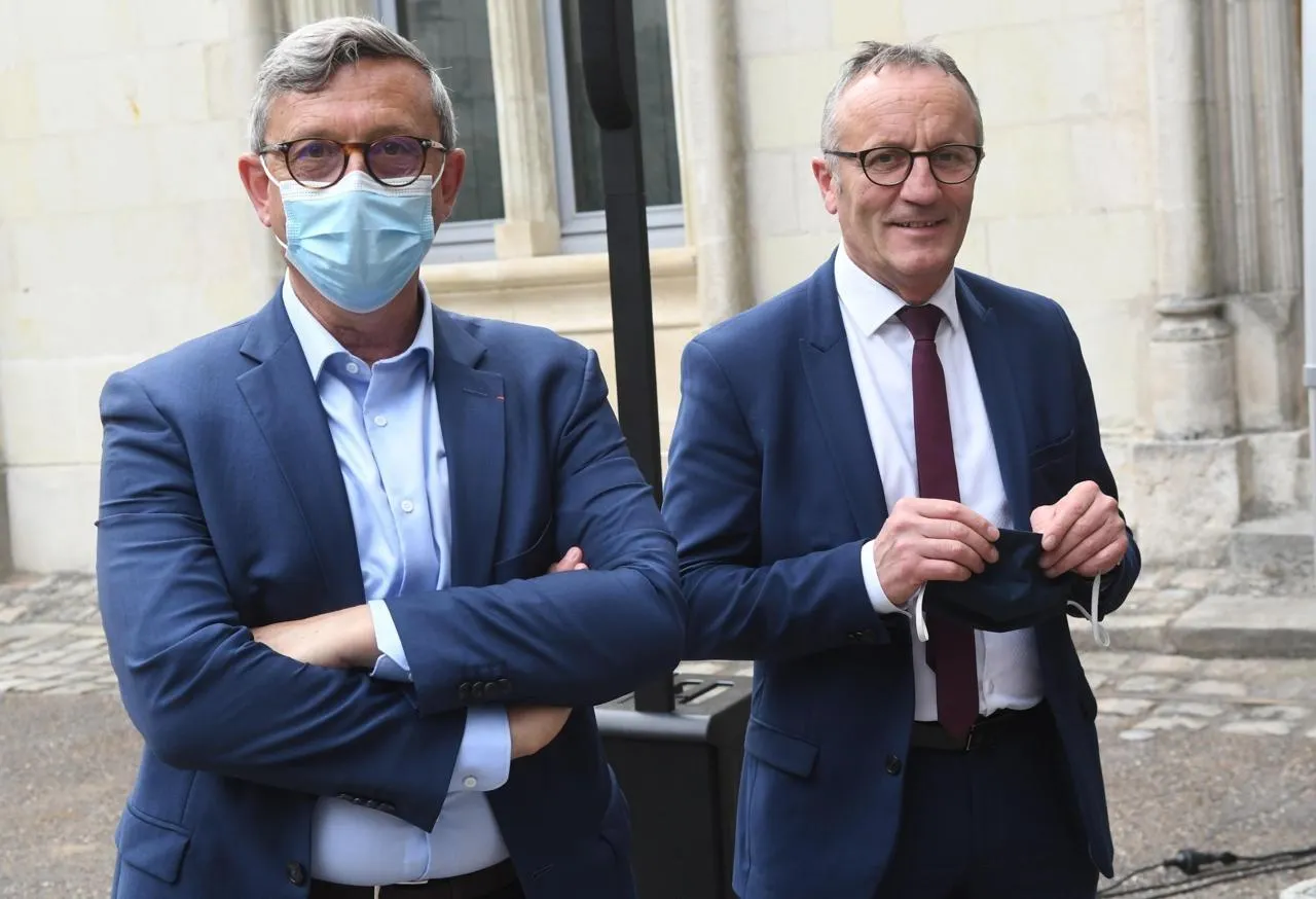 À Saumur, Bertrand Chandouineau (à gauche) et Jackie Goulet avancent encore masqués : le premier songe à monter une liste dissidente à droite alors que celle de Séverine Lecuyer a reçu le soutien de LR, le second attend janvier pour annoncer officiellement sa candidature. © Archives CO