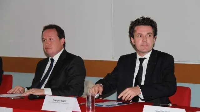 Frédéric Béatse, maire PS d'Angers et Christophe Béchu, candidat UMP. © Arnaud Wajdzik