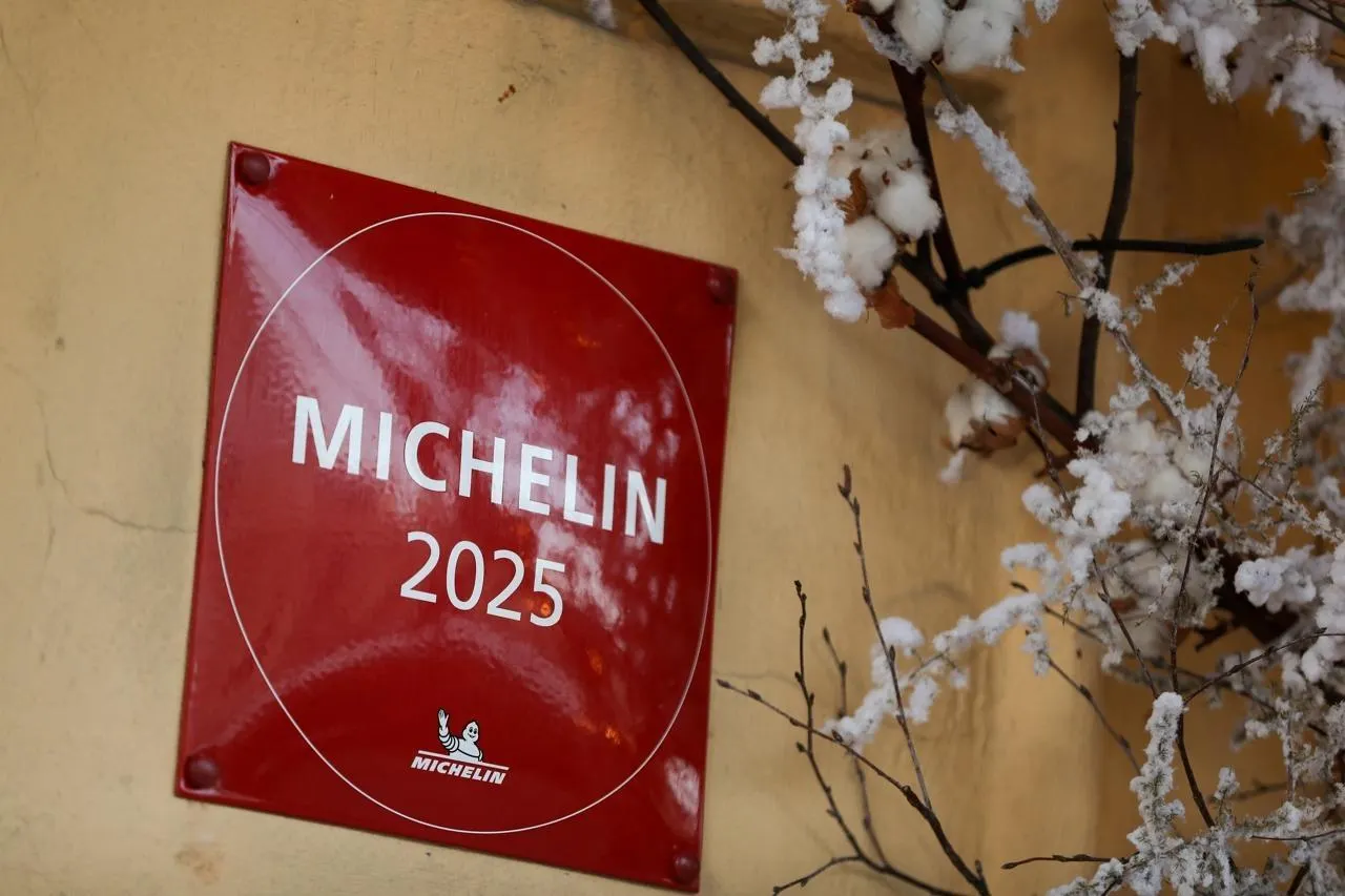 Une distinction Michelin est visible dans une rue de Cracovie, en Pologne, le 19 janvier 2026. © Photo : Klaudia Radecka/NurPhoto via AFP