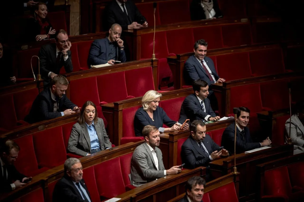 Plusieurs députés du Rassemblement national, dont la présidente du parti, Marine Le Pen, dans l’hémicycle de l’Assemblée nationale, à Paris, 6 janvier 2026. © ARTHUR N. ORCHARD / Hans Lucas via AFP