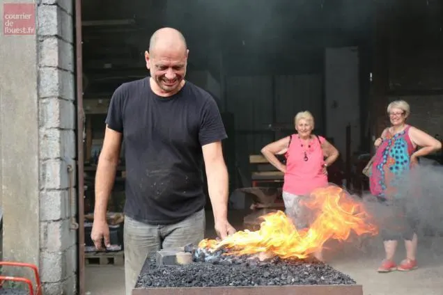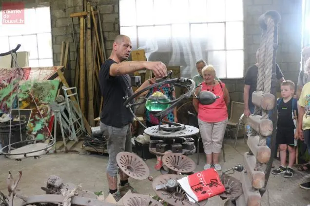 La rencontre dans l’atelier de l’artiste a permis aux visiteurs d’avoir une impressionnante démonstration de forge, et même de s’initier à marteler le fer incandescent sur l’enclume pour les plus audacieux.