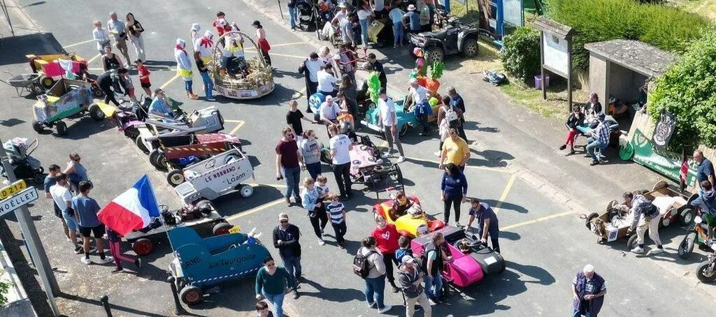 La seconde édition de la course de caisses à savon aura lieu dimanche 1er juin. 70 bénévoles y travaillent d’arrache-pied. En 2024, le rendez-vous avait rassemblé 3 000 spectateurs. Lire page 8. © Archives Ouest-France