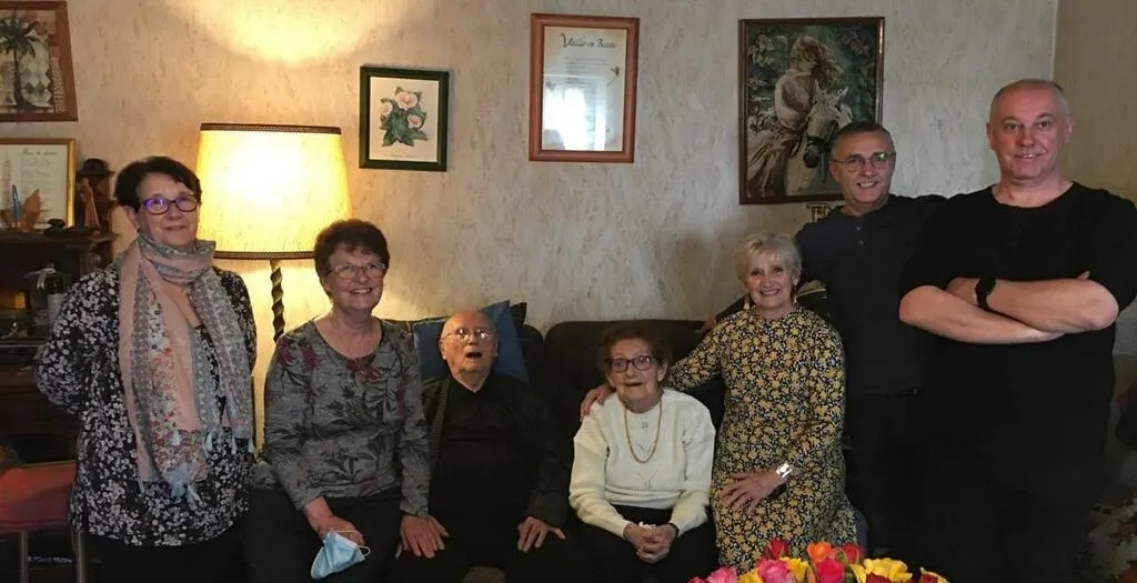 Georgette et Maurice Gauthier ont fêté leurs 75 ans de mariage avec leurs cinq enfants qui ont « tombé le masque » pour la photo.