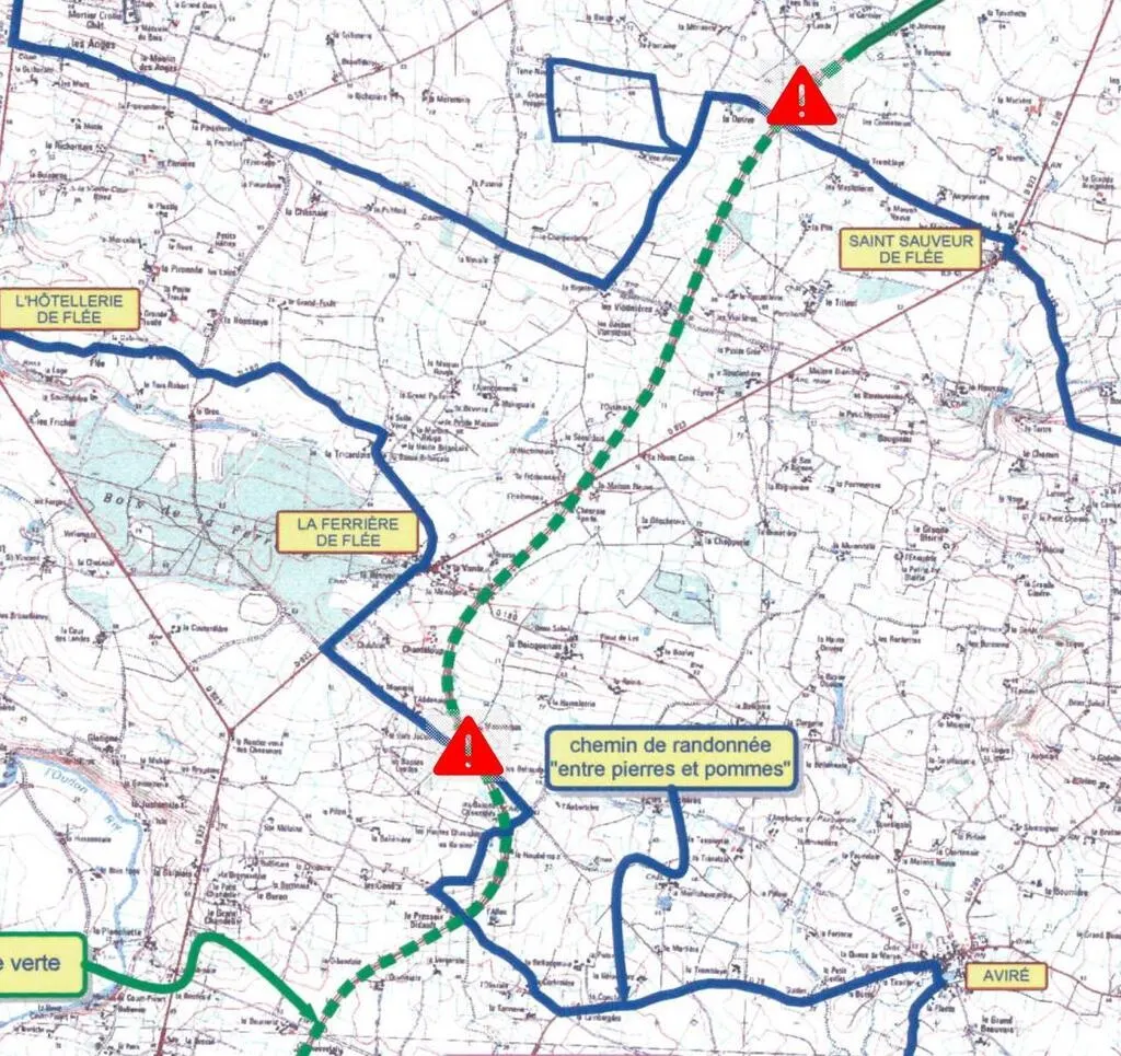 La voie verte est fermée entre la Chapelle Pomme-Poire et le lieu-dit La Douve à Saint-Sauveur-de-Flée. Anjou bleu communauté
