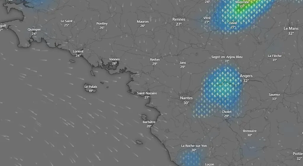 Une nouvelle perturbation abordera la pointe bretonne en soirée samedi avec un net renforcement du vent. La nuit s’annonce également orageuse autour d’Angers. Dimanche, le ciel devrait se dégager offrant des éclaircies mais quelques averses sont également attendues.