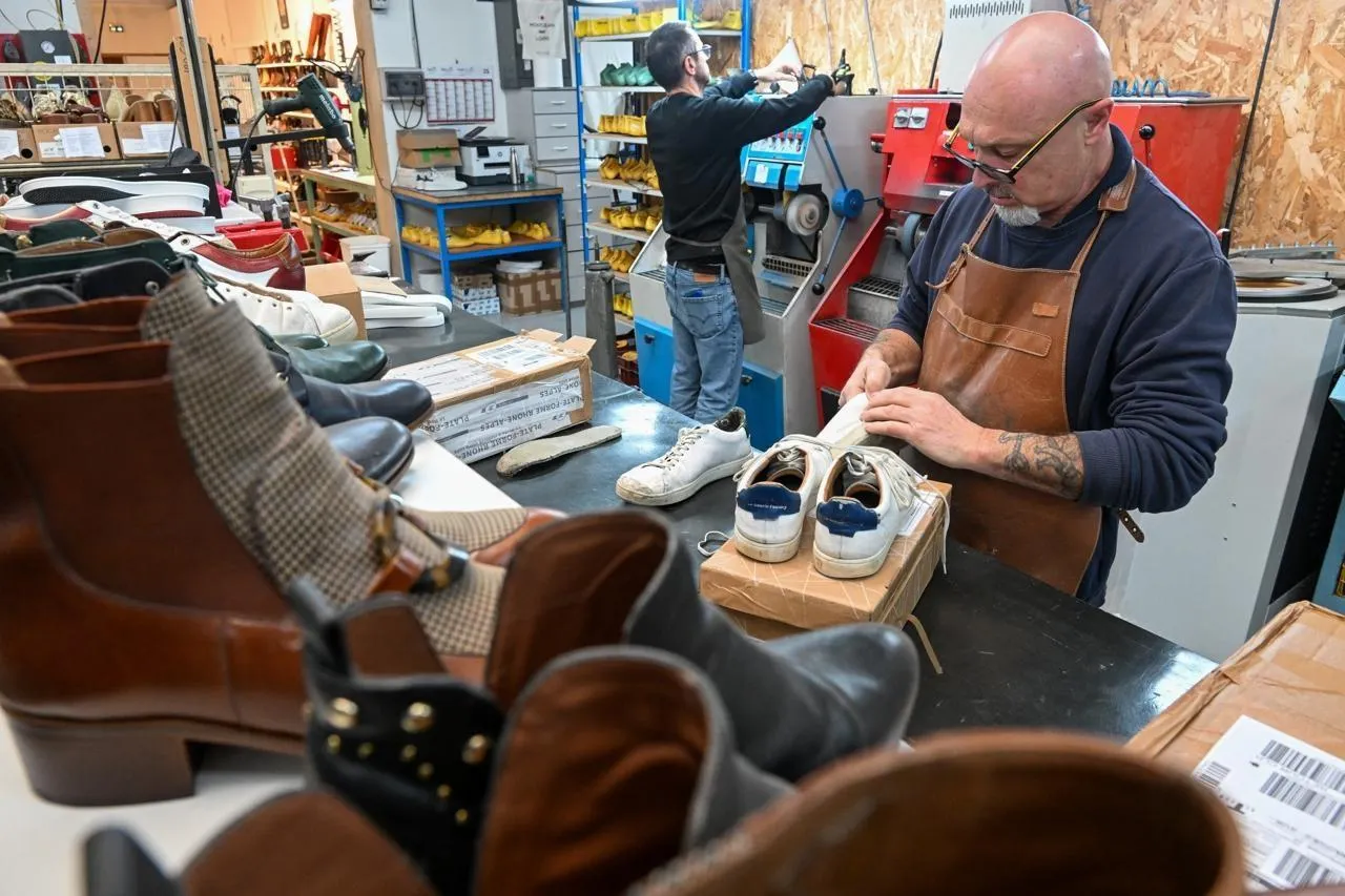 Montjean-sur-Loire (Mauges-sur-Loire), mardi 25 novembre. L’équipe de la discrète marque ligérienne Sessile s’apprête à fermer son site durant 24 heures pour orienter ses clients vers sa vingtaine de revendeurs physique et promouvoir la réparation de leurs chaussures. © CO – Laurent COMBET