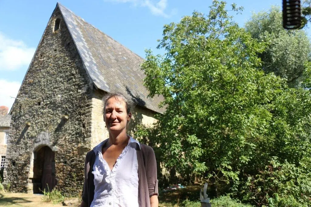 Geneviève Karlsson devant la chapelle de la Cour des Aulnays. © Archives CO