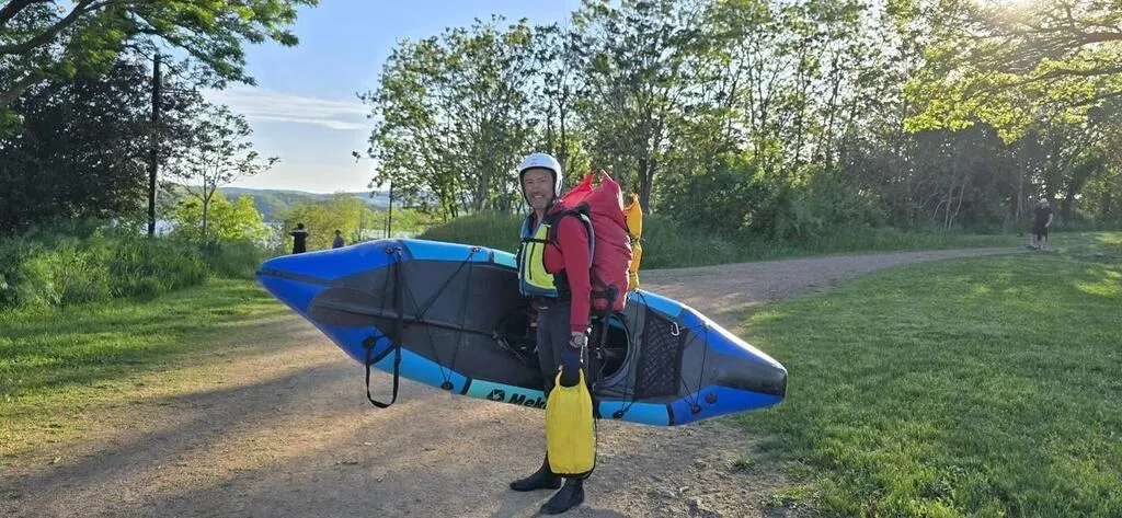 Parti le 27 avril du Mont Gerbier de Jonc, où le fleuve prend sa source, il a depuis descendu des mille kilomètres à bord d’un packraft (mélange de kayak et de rafting).