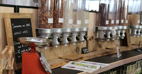 Côté épicerie, le lieu propose tout ce qui fait un magasin bio de proximité : fruits et légumes de saison, produits frais, vrac, cave à vins et bières, sans oublier des articles dédiés au bien-être du quotidien.