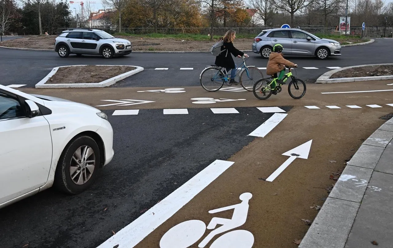 Plus de sécurité pour les cyclistes dans le nouveau rond-point à la hollandaise, à Nantes... |