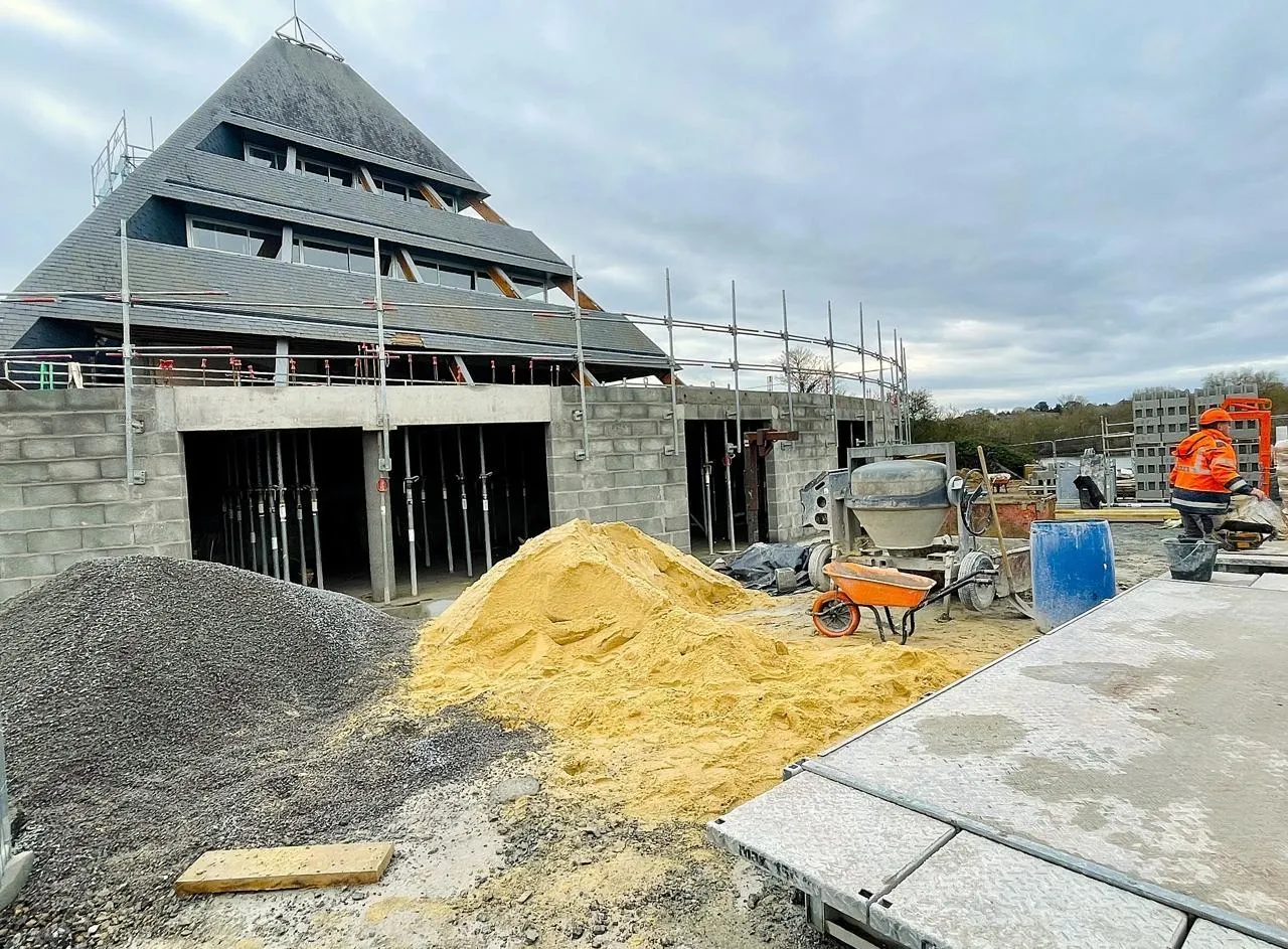 À Angers, dans le cadre du chantier de la pyramide du lac de Maine, les ardoises de Trélazé qui recouvrent l’édifice, seront déposées puis réutilisées par des apprentis en couverture du centre de formation de Belle-Beille. La structure en bois sera conservée. © Ouest-France