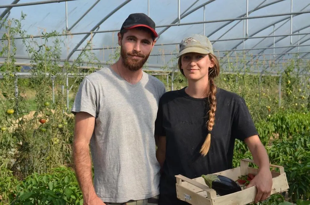 Killian Conesa et Sarah Pétreault sont maraîchers à Challain-la-Potherie. Installés depuis octobre 2021, ils ont repris la ferme des grands-parents de Sarah et s’appuient sur l’agroécologie. © Ouest-France