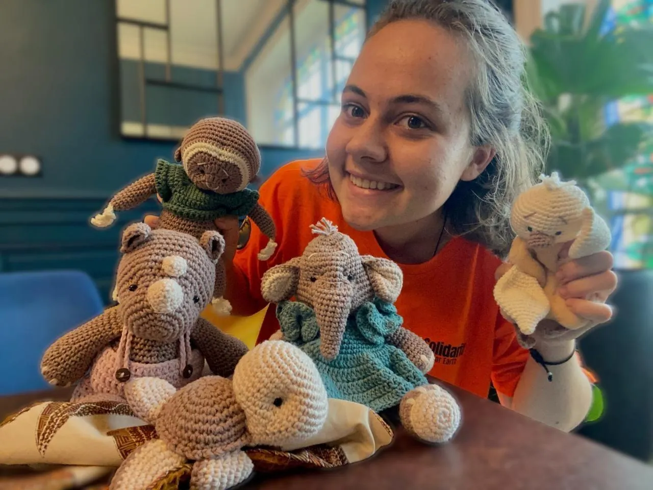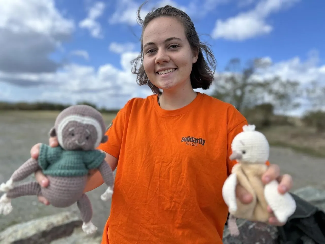 Mûrs-Érigné, jeudi 4 septembre 2025. Céleste Mazure, fondatrice de Solidarity For Earth, va partir cinq mois à l’étranger pour protéger des animaux menacés. Pour financer l’expédition, elle crochète des doudous. © DR