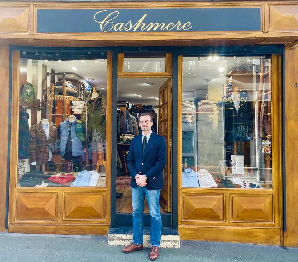Depuis le mois de septembre, c’est Thibault Pronier, véritable passionné du style anglais et autrichien, qui a repris les rênes de l’enseigne Cashmere. Afin de préserver l’ADN des lieux, il s’est entouré de références de prestige, parmi lesquelles on peut citer la maison Maximilian (anciennement Schneiders Salzburg), la maison William Lockie pour la maille, la maison Bernard Zins pour les pantalons, et la maison italienne Calzificio Palatino pour les chaussettes.