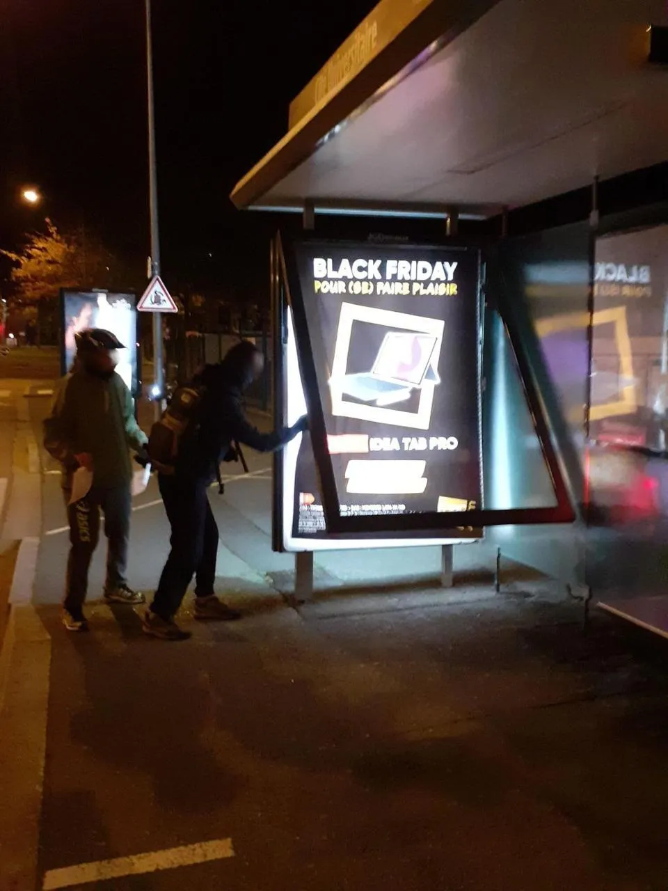 L’action « a pour objectif de dénoncer l’incitation à la surconsommation avec toutes les pubs présentes en ville et en particulier durant cette période du Black Friday (ou November) », précise Extinction Rebellion.
