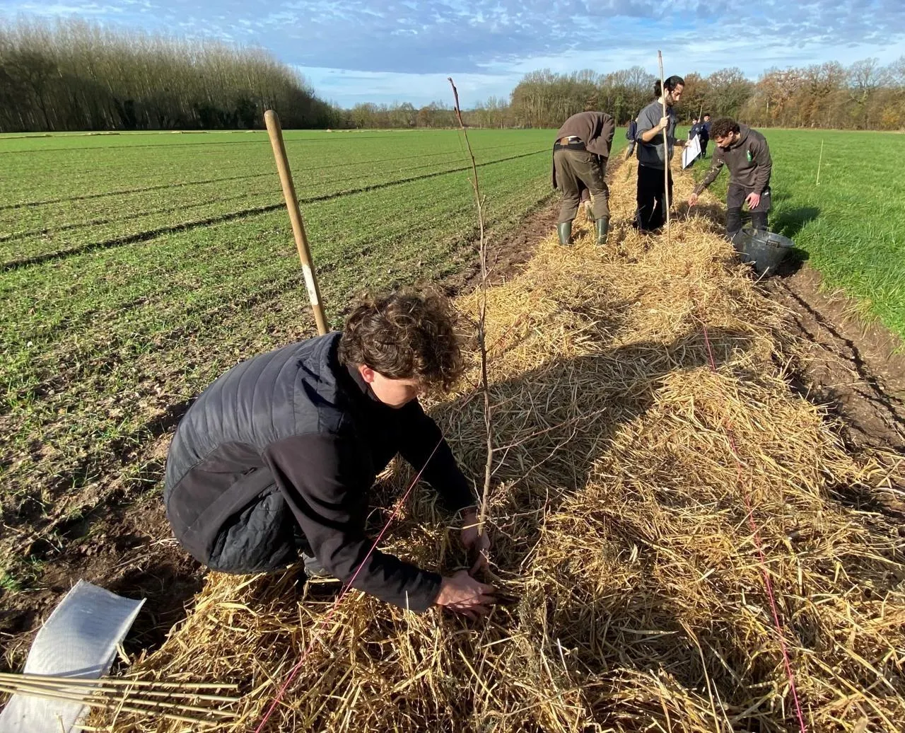 La plantation d’une haie à Boudré, à Seiches-sur-le-Loir, au nord d’Angers (Maine-et-Loire). © Département du Maine-et-Loire
