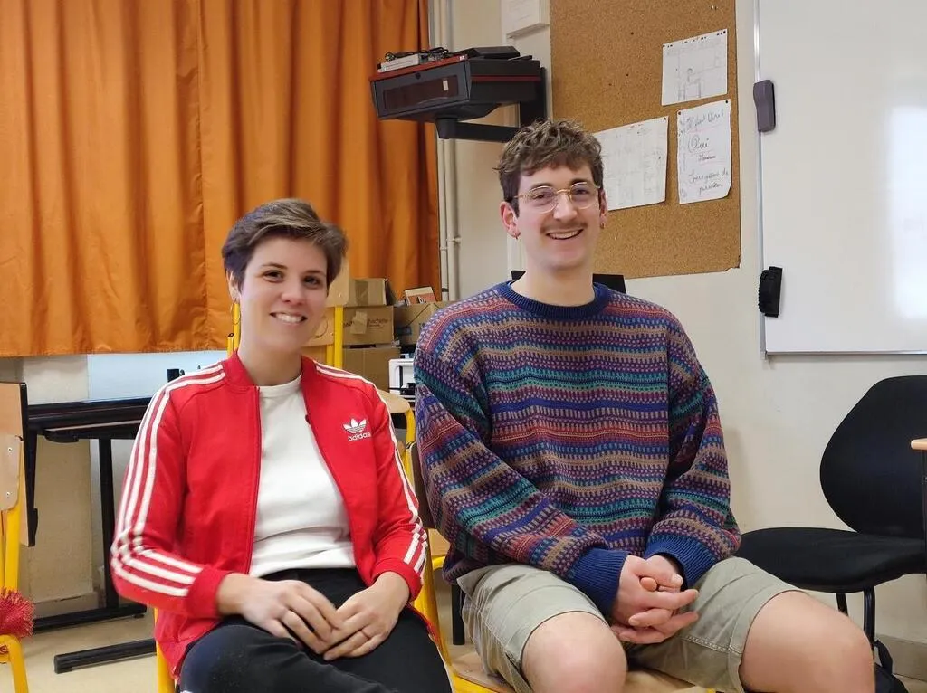 Louise Kevalla et Bertrand Cauchois ont animé les ateliers théâtre auprès de 110 élèves des classes de 5e du collège Camille-Claudel. © Ouest-France