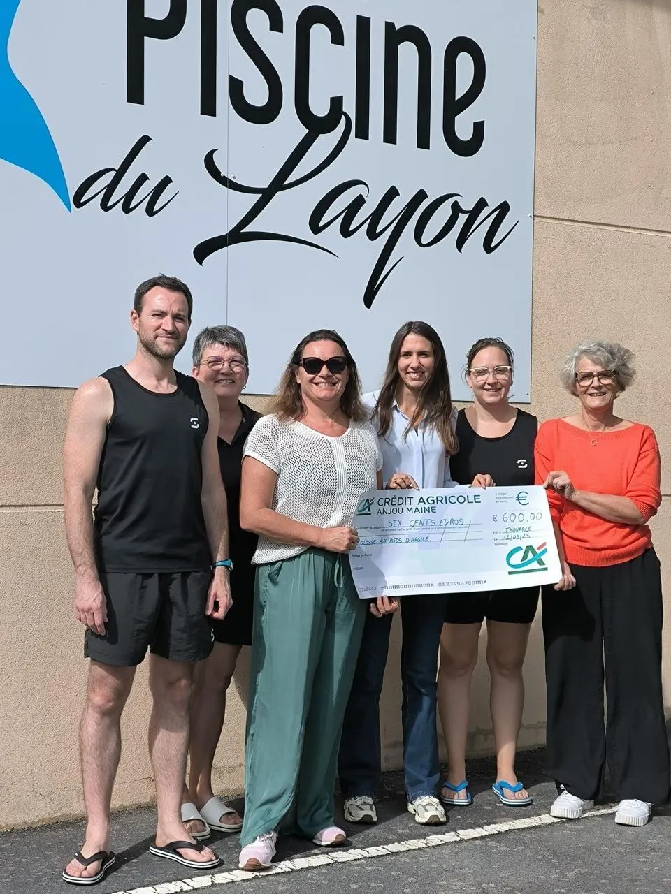 Le centre aquatique du Layon a remis un chèque de 600 euros à l’association Colosse aux pieds d’argile. © CO