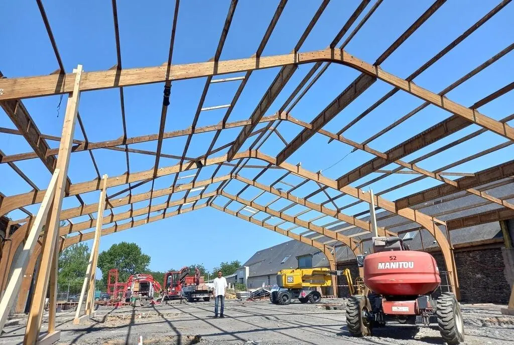 Hormis la charpente, la salle Rue a été démolie. Elle sera rehaussée en son centre. Khalid Lammini, directeur de l’école des arts du cirque la Carrière, à Saint-Barthélemy-d’Anjou, près d’Angers (Maine-et-Loire) est heureux de voir le chantier lancé. © Ouest-France