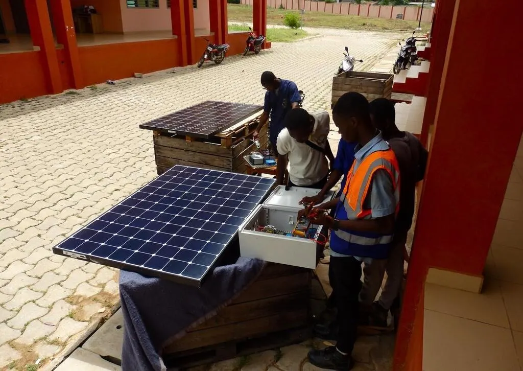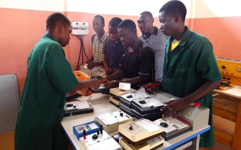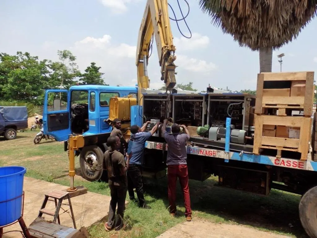 Le déchargement du matériel issu du lycée Saint-Aubin-de -la-Salle à l’Enset de Lokossa au Bénin. © Communauté Emmaüs