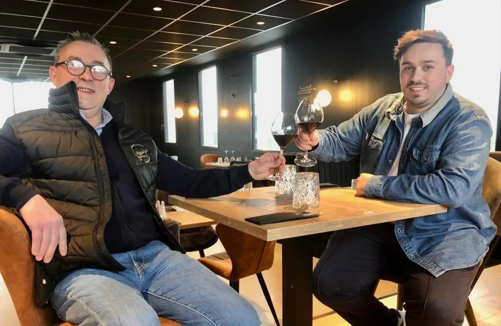 Écouflant, le 26 mars 2024. Denis (à gauche) et Simon Dutour trinquent au succès de leur Bistrot de l’Industrie. © CO