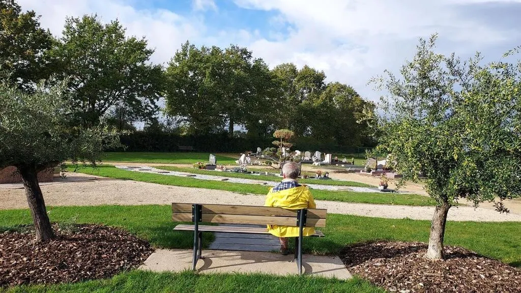 Jean-Jacques Dulong apprécie le confort ergonomique du banc installé dans l’espace de recueillement du cimetière des Brosses. © Ouest-France