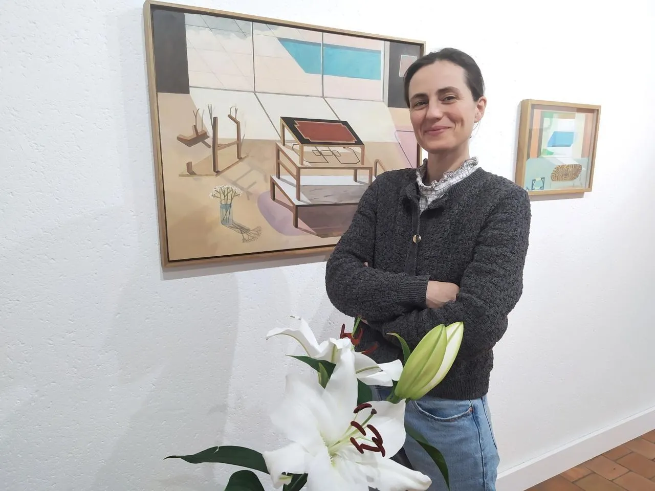 Pour la première de la saison 2026, le Village d’artistes a retenu Solène Ortoli et son exposition intitulée « Bois dormant ». J’ai choisi ce nom, m’amusant de ce jeu de mots. Le clin d’œil au conte bien sûr, et aussi mes toiles sur le thème du bois : des meubles plus ou moins imaginaires, dans des pièces tournées vers l’extérieur et la lumière. Avec un intrus par rapport à la réalité : le bois qui devient vivant et se remet à pousser. Un peu comme dans Lewis Caroll, l’ambiguïté entre intérieur et extérieur. J’aime remodeler les paysages, un peu comme ces images du Moyen Âge, d’avant la perspective et qui laisse une sorte de place à la maladresse