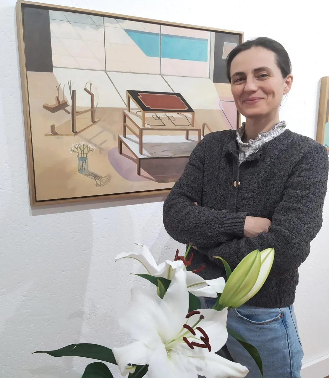 Pour la première de la saison 2026, le Village d’artistes a retenu Solène Ortoli et son exposition intitulée « Bois dormant ». J’ai choisi ce nom, m’amusant de ce jeu de mots. Le clin d’œil au conte bien sûr, et aussi mes toiles sur le thème du bois : des meubles plus ou moins imaginaires, dans des pièces tournées vers l’extérieur et la lumière. Avec un intrus par rapport à la réalité : le bois qui devient vivant et se remet à pousser. Un peu comme dans Lewis Caroll, l’ambiguïté entre intérieur et extérieur. J’aime remodeler les paysages, un peu comme ces images du Moyen Âge, d’avant la perspective et qui laisse une sorte de place à la maladresse